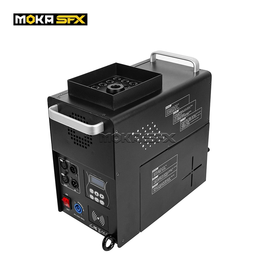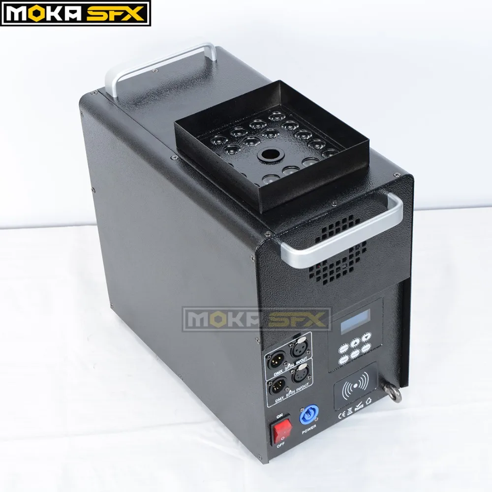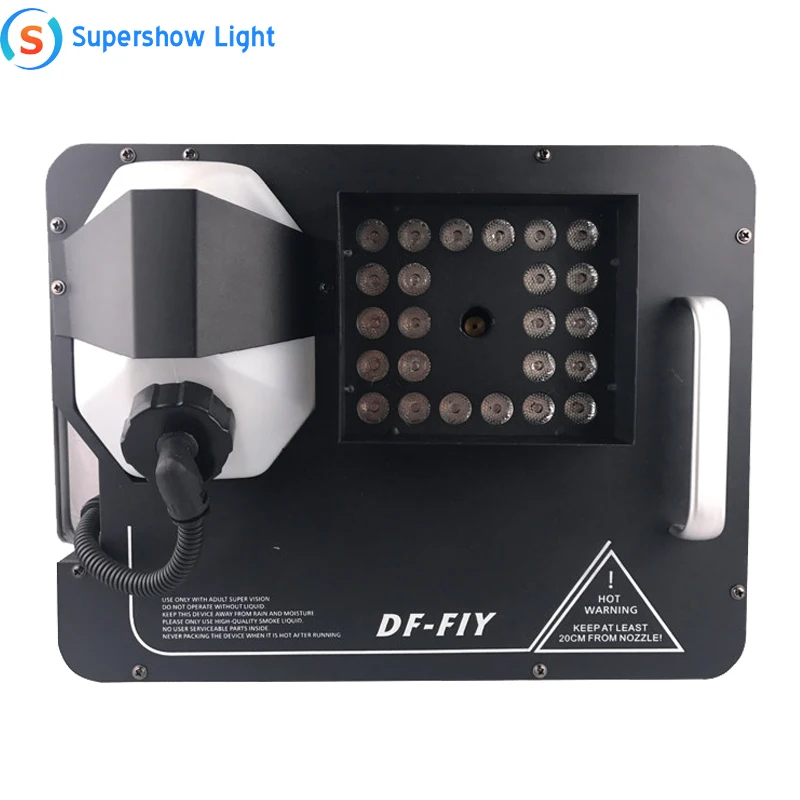 - DJ mgła maszyna do DF-S6A 1500 W kolorowe kolumny gazowej maszyny do dymu aerozoli opryskiwacz dym sprayu odległość 8 M 24 diody led bezprzewodowe sterowanie