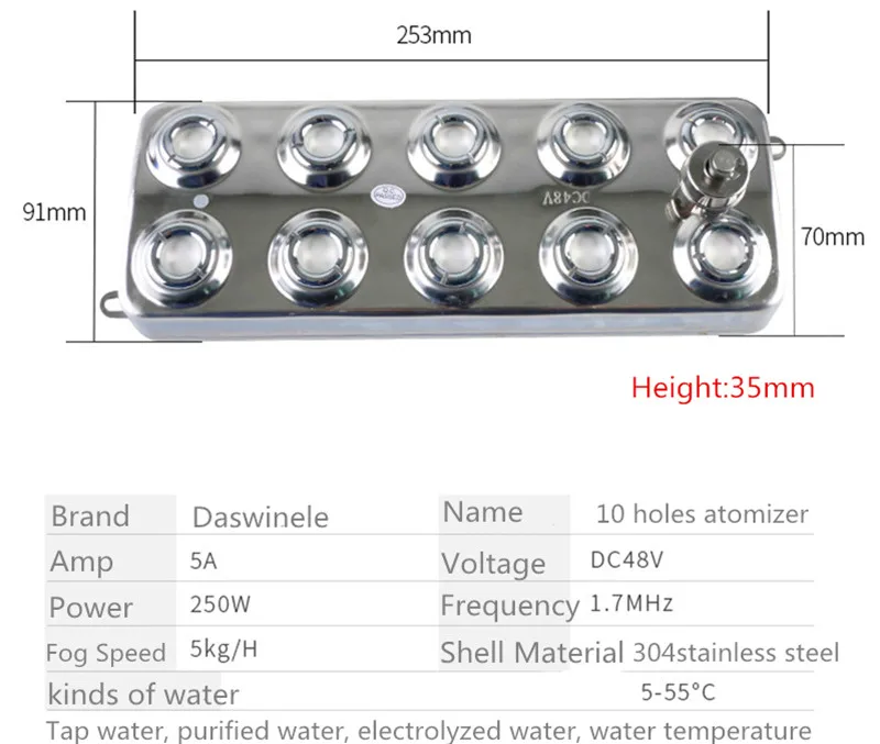 - Nowy rozpylacz ultradźwiękowy przemysłowy 10 głowy nawilżacz maszyna do mgły 5 kg/h ultrasoniczny dyfuzor Fogger dla grzyb DC 48V